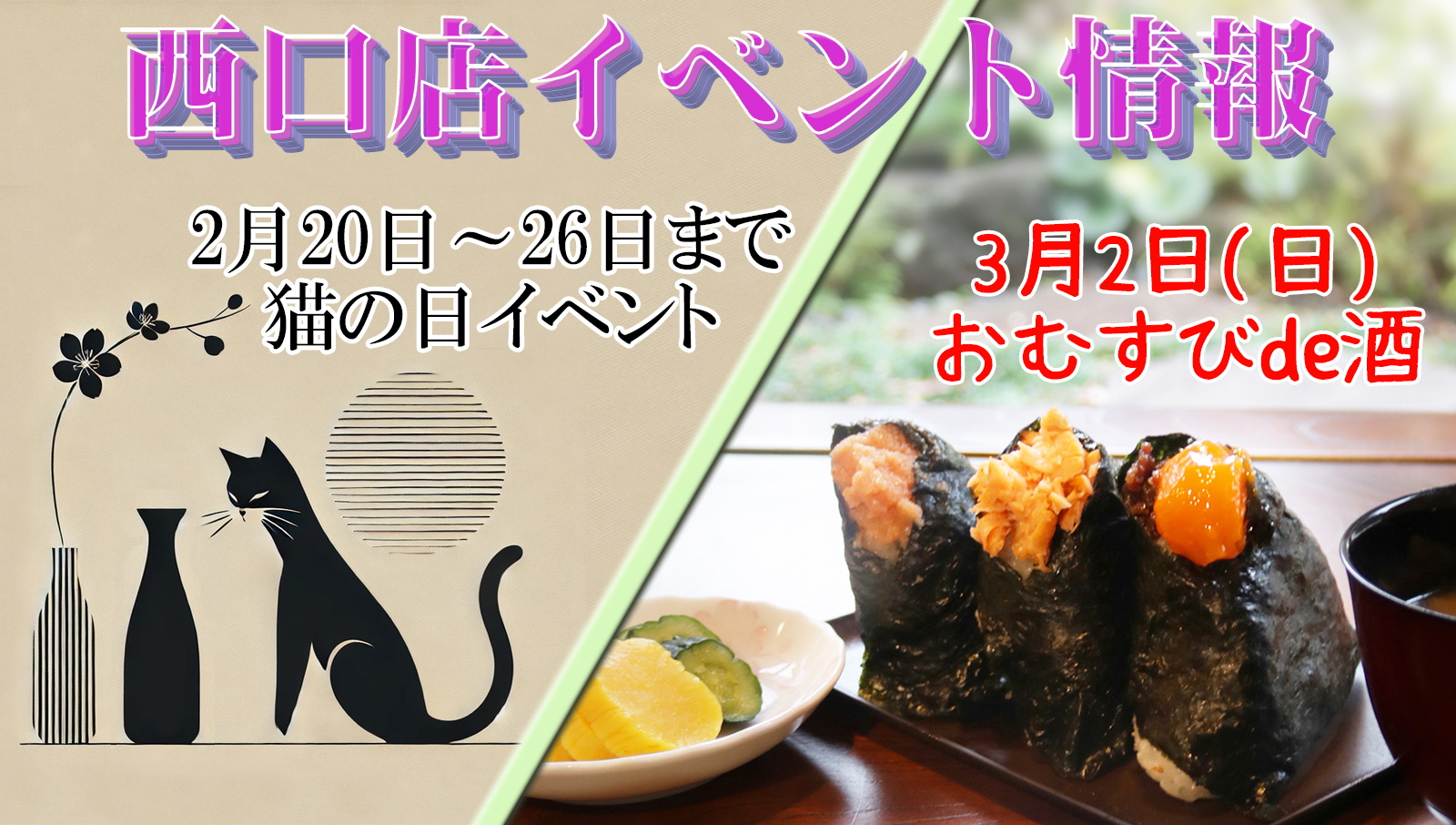 2月・3月のマツザキ西口店イベント情報 2025.02.17 イベント 2月と3月にてマツザキU_PLACE西口店にて特別なイベントが開催予定となっております! 【猫の日イベント】2月20日(木)~2月26日(水)まで 【お結びde酒】3月2日(日)16:00~19:00まで