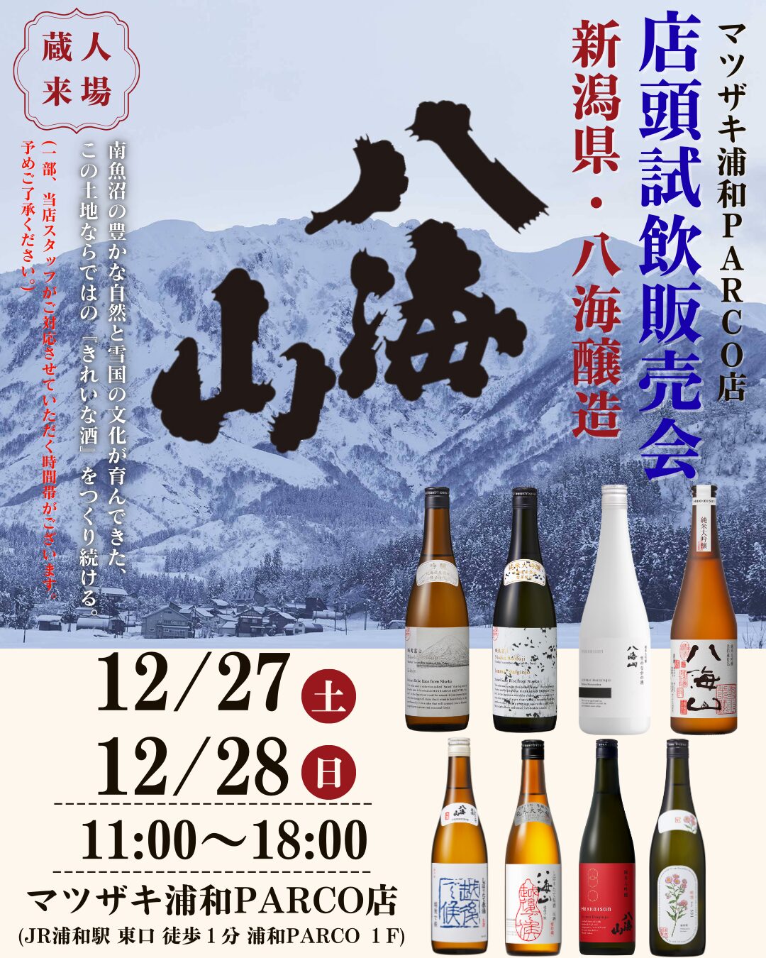 マツザキ浦和店では12月27日(土)・28日(日)の二日間、八海山の蔵人が来て二日連続の試飲販売会を行います!